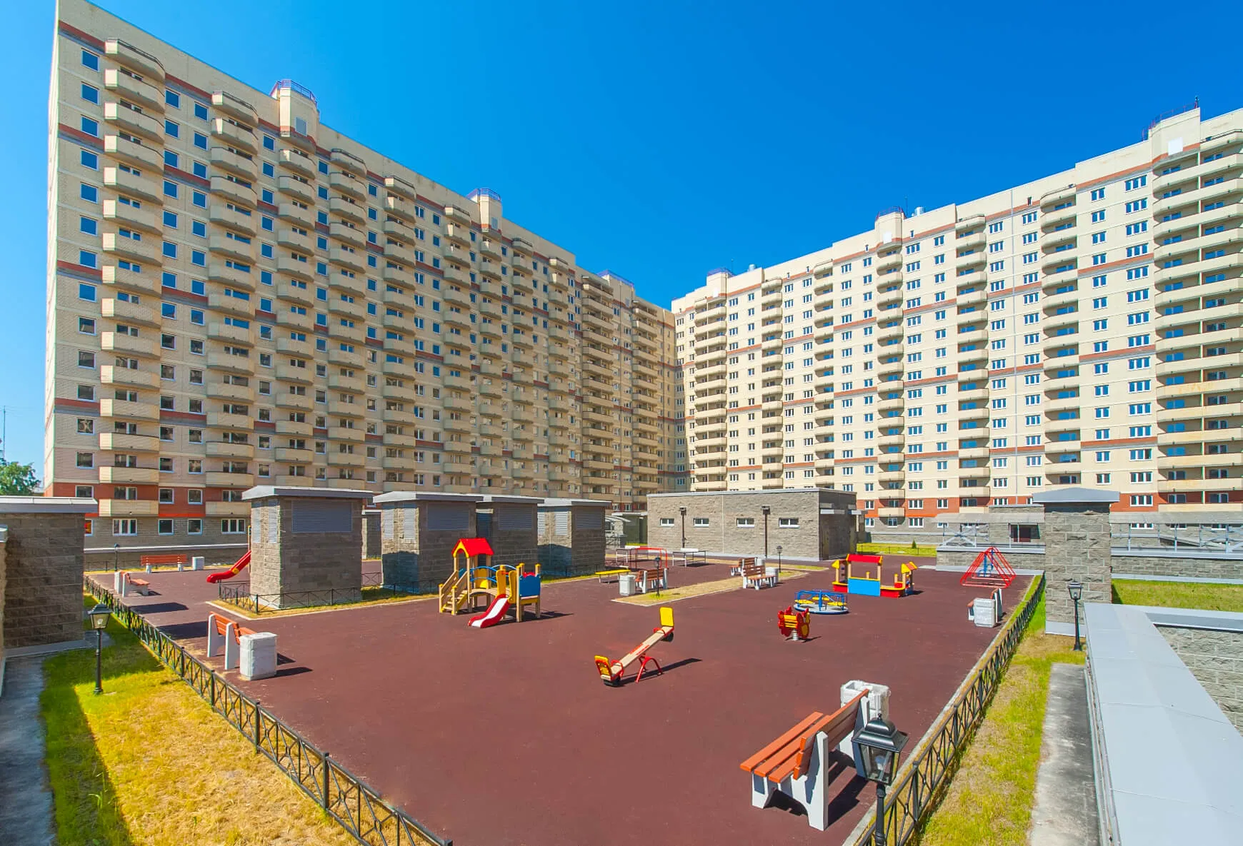 Жильцы жилого комплекса "Маршал" будут иметь в своем распоряжении все необходимое для комфортной и удобной жизни: крытый подземный паркинг, детские площадки, площадки для спорта и отдыха взрослых с тренажерами, изолированную территорию комплекса с современной системой видеонаблюдения.