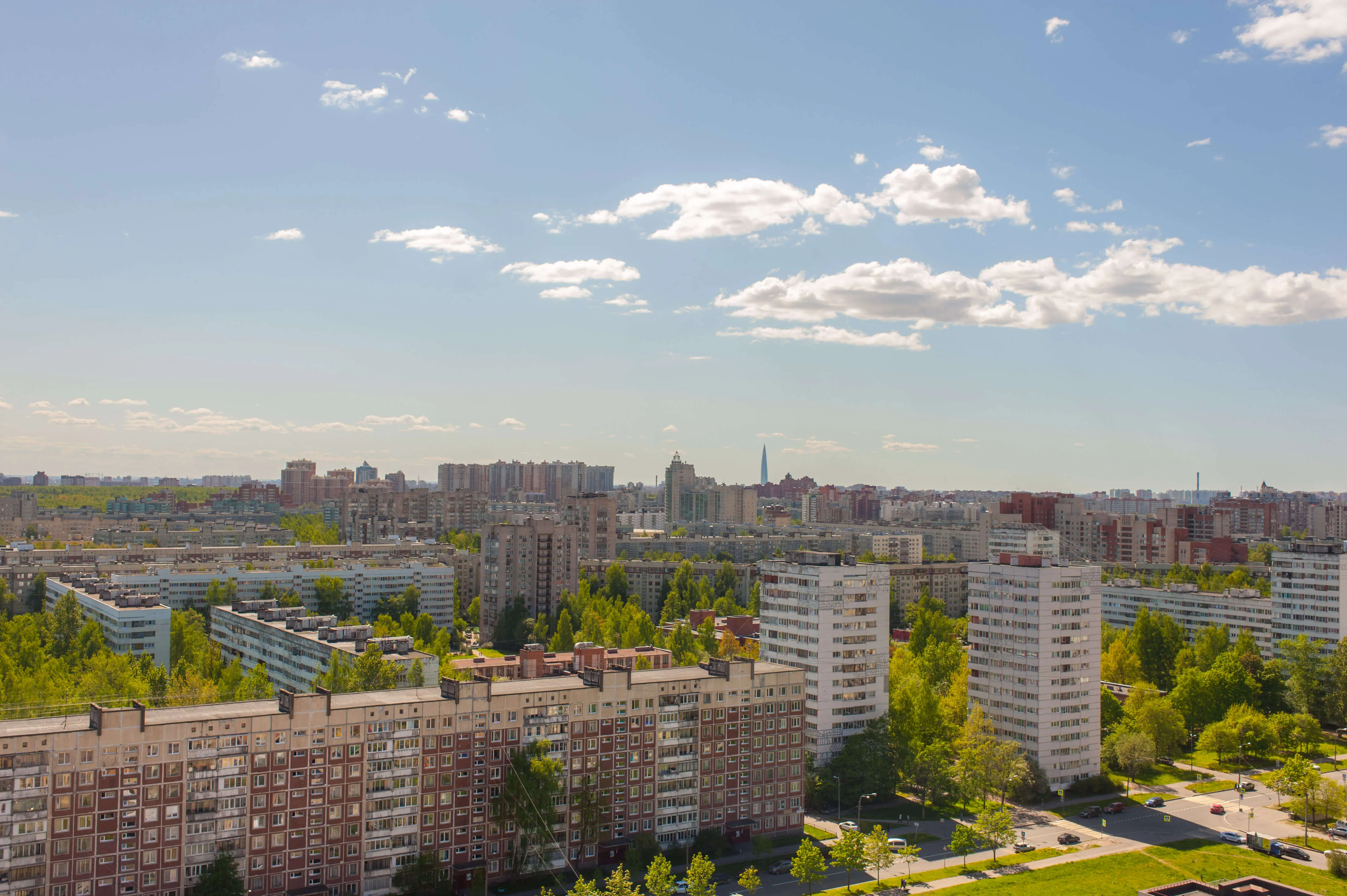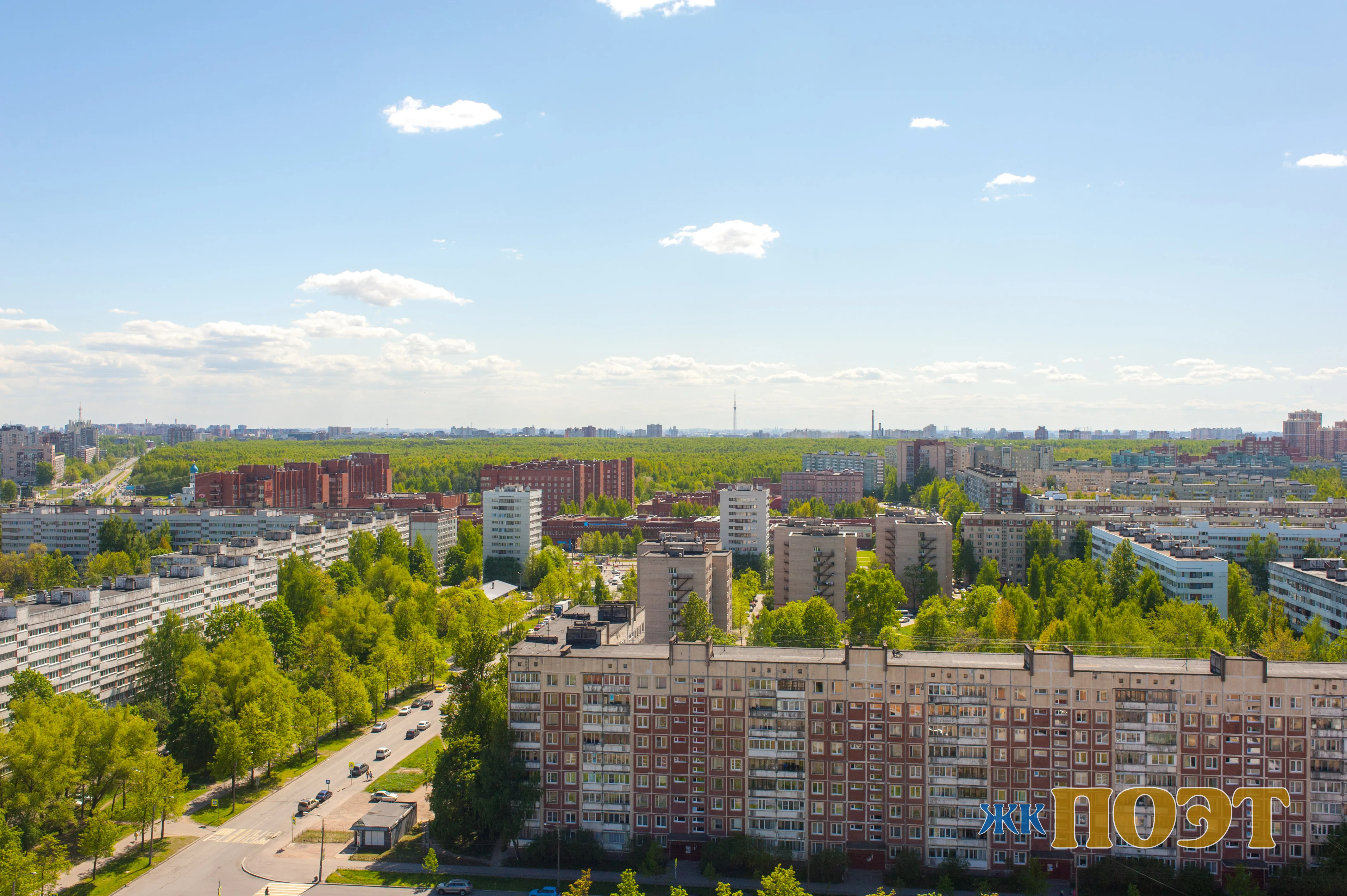 Большая часть квартир имеет прекрасные виды на город. С верхних этажей открывается панорама с видом на парк Сосновка.