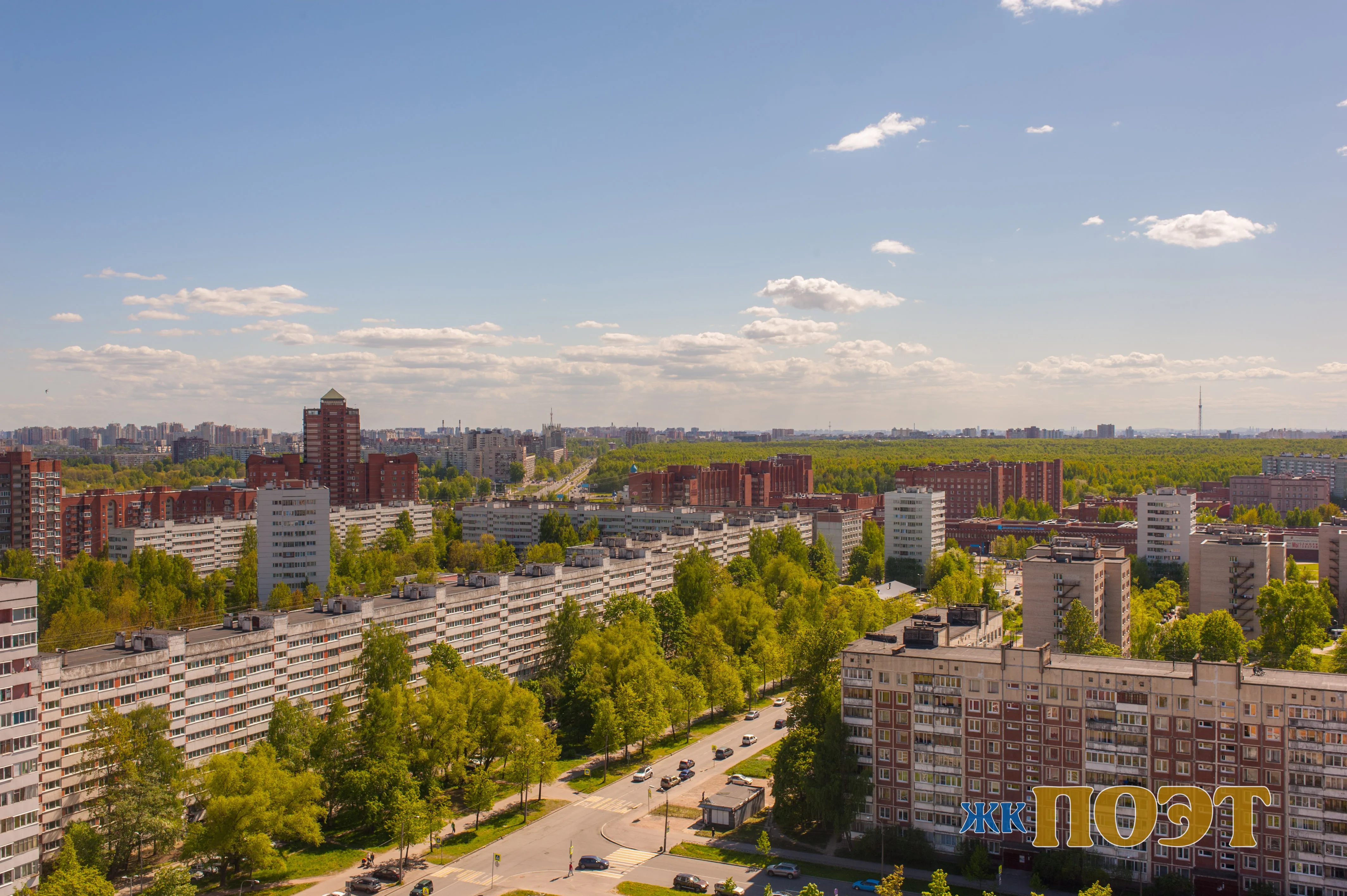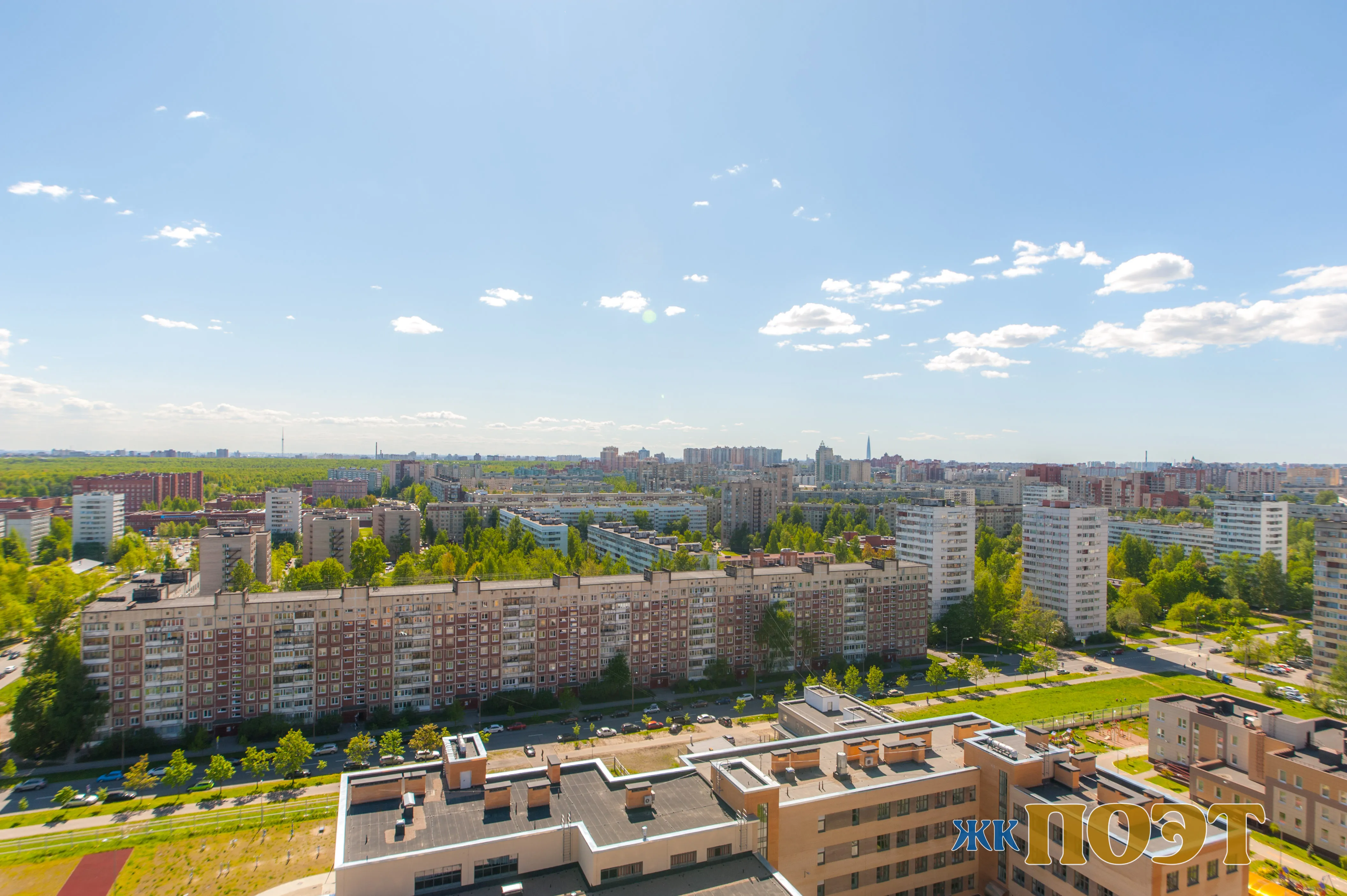 Большая часть квартир имеет прекрасные виды на город. С верхних этажей открывается панорама с видом на парк Сосновка.